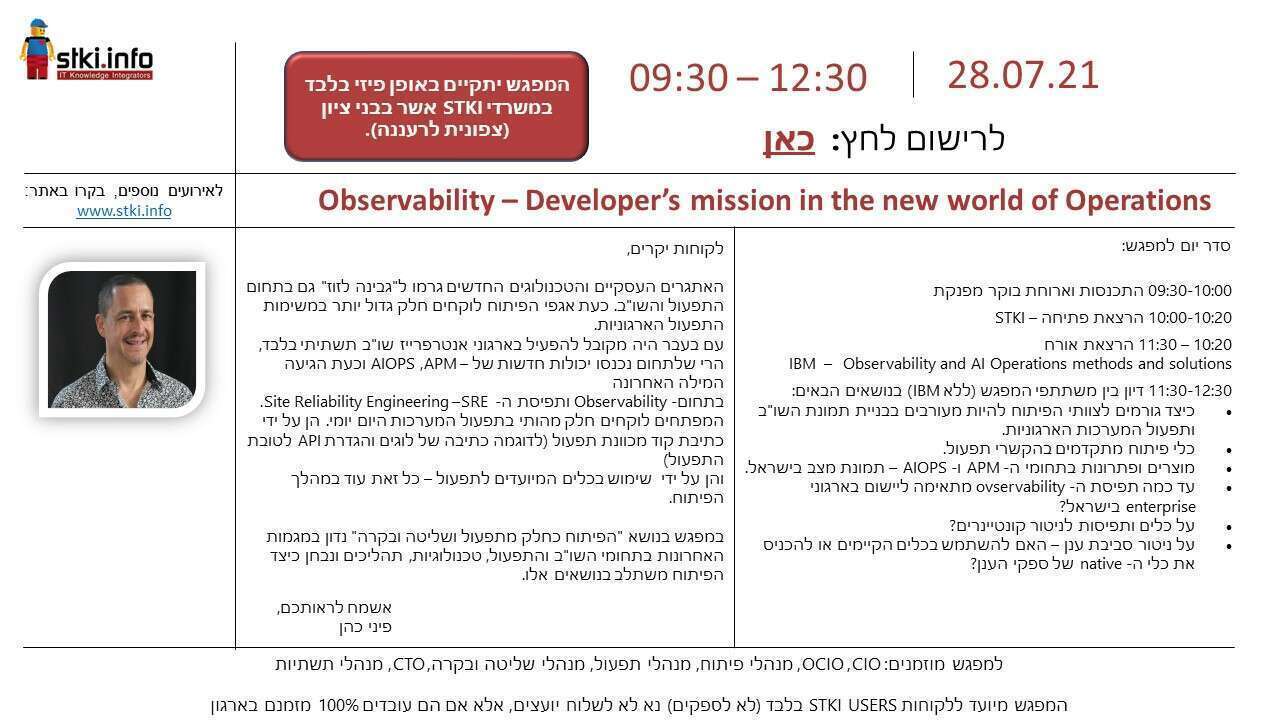 Observability –Developer’s mission in the new world of Operations - מושב בני ציון