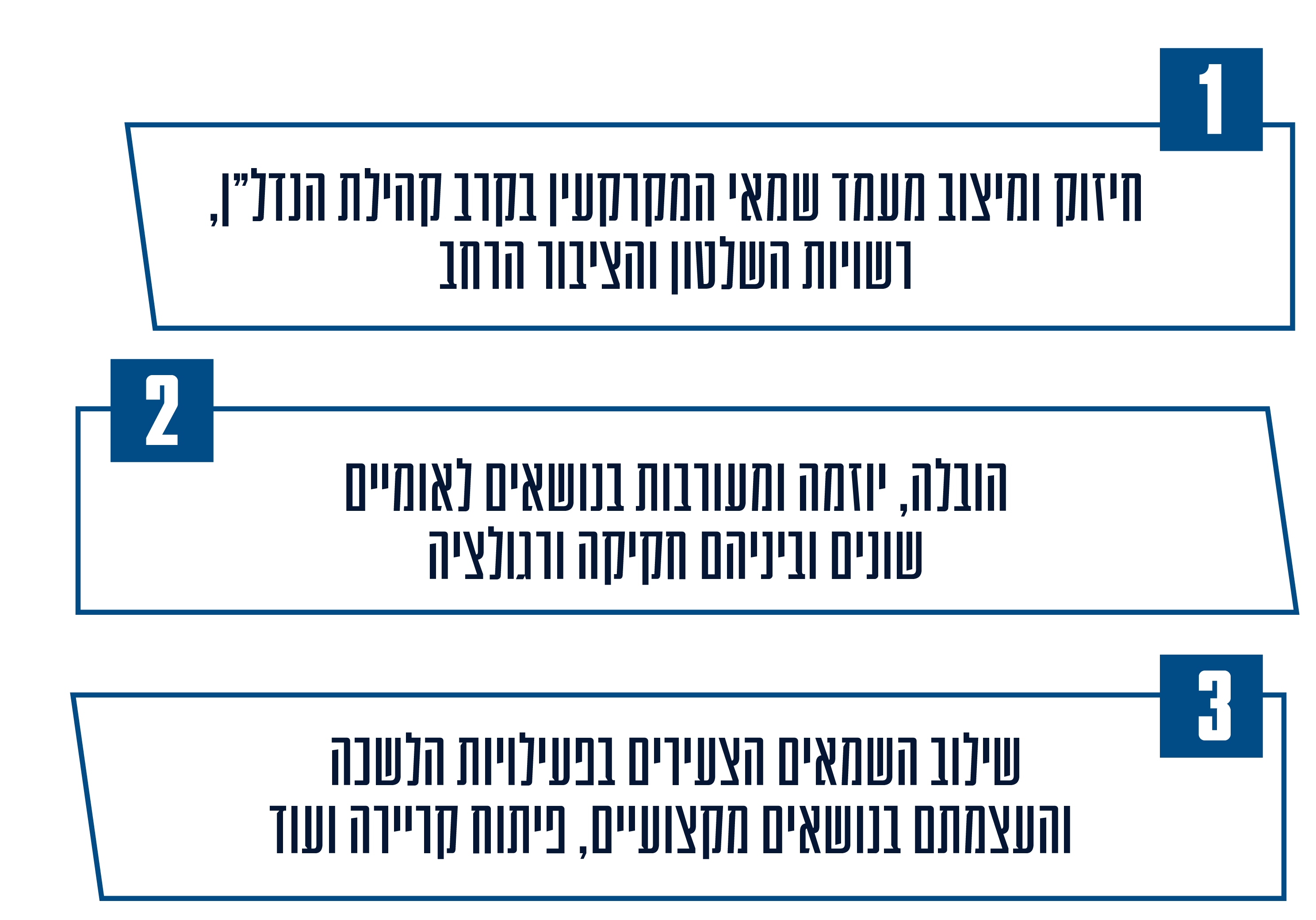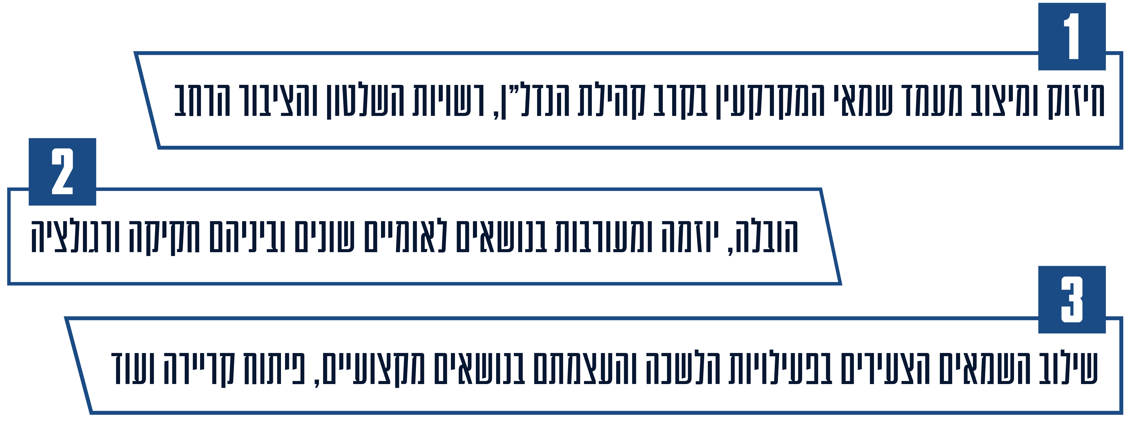 היא הציגה 3 מטרות מרכזיות אותן היא מקדמת בלשכה, והן: